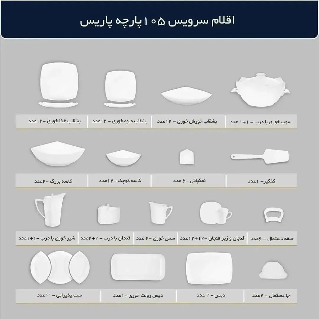 چینی پردیس طرح دلوین نقره ای 105 پارچه، یک مجموعه بینظیر و با کیفیت از ظروف چینی است که به ویژه برای مهمانیها و مناسبتهای ویژه طراحی شده است. این مجموعه با طراحی زیبا و منحصر به فرد خود، میتواند محتوایی جذاب و شیک برای میز غذاخوری شما فراهم کند. ظروف این مجموعه از چینی مرغوب ساخته شده و تستهای کیفی سختی را با موفقیت پشت سر گذاشتهاند. طرح دلوین با جزئیات نقرهای و الگوهای زیبا، نمایی لوکس و مدرن به میز شما اضافه میکند. این مجموعه شامل همه چیزهایی است که ممکن است برای یک غذای رسمی به آن نیاز داشته باشید؛ از بشقابهای پیشغذا و غذای اصلی گرفته تا کاسه و لیوان. چینی پردیس به راحتی در شستشو و نگهداری است و میتوانید آن را در ماشین ظرفشویی و مایکروویو استفاده کنید. کاربردهای این ظروف همچنین فراتر از صرف غذا است و میتوانید از آنها برای تزیین خانه و فضای داخلی استفاده کنید. با چینی پردیس طرح دلوین نقره ای 105 پارچه، هر وعده غذایی تبدیل به یک تجربۀ دلچسب و یادگارآور خواهد شد. این ظروف به شما این امکان را میدهند که آداب برگزاری مهمانی خود را به بهترین شکل انجام دهید و هر مهمان را تحت تأثیر قرار دهید. با خرید این مجموعه، شما به تعهد ما در تولید ظروف با کیفیت و زیبایی تأکید میکنید. در نهایت، چینی پردیس طرح دلوین انتخابی مناسب برای کسانی است که به دنبال زیبایی و کیفیت در ظروف خود هستند.